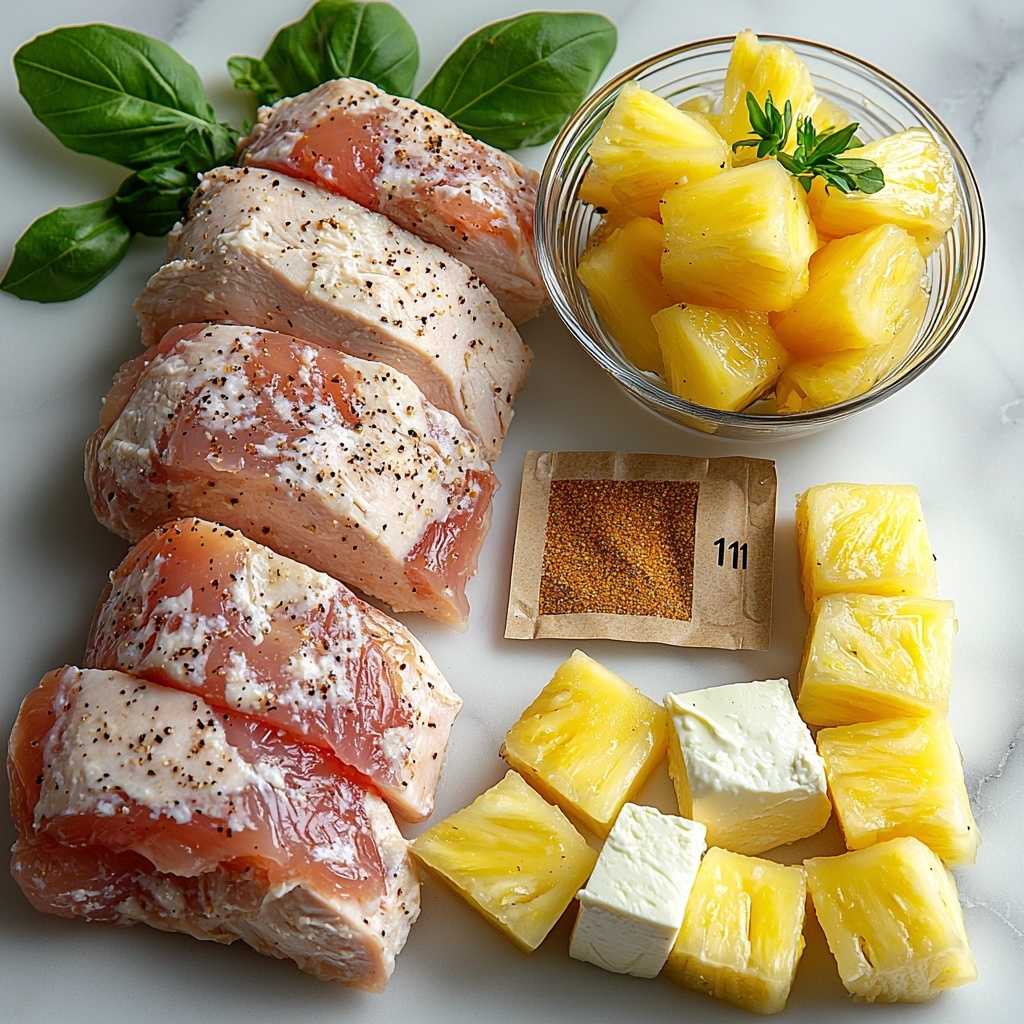 A simple and flavorful slow cooker recipe combining tender chicken breasts with cream cheese, sweet pineapple rings, and savory ranch seasoning. This dish creates a creamy, tangy sauce perfect for serving over rice or noodles, making an easy and comforting meal with minimal effort.