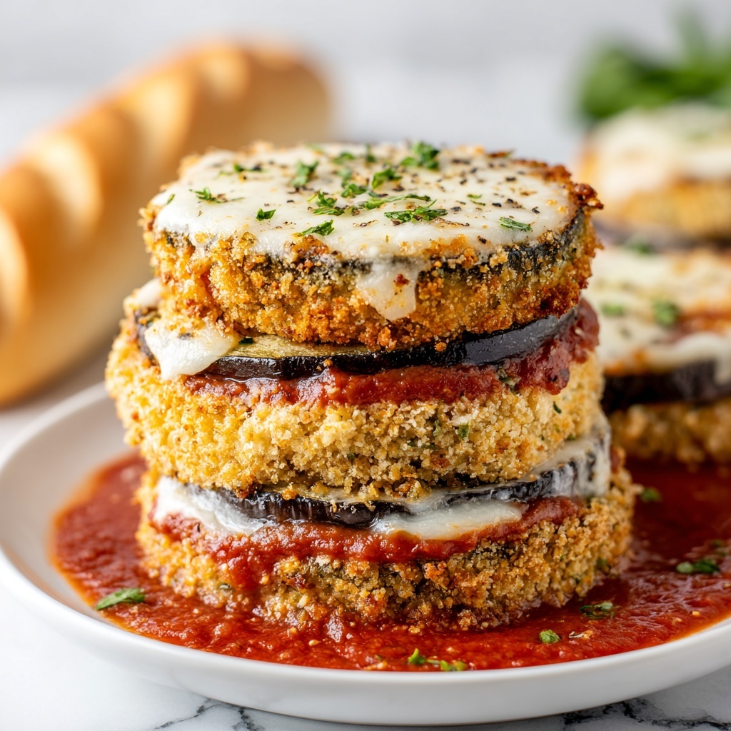 For a fun twist, try stacking the eggplant slices layered with sauce and cheese, creating mini lasagna-style towers. Alternatively, serve the eggplant Parmesan atop a bed of cooked quinoa or zucchini noodles for a fresh, modern take.