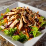 A vibrant and healthy Asian Chicken Cranberry Salad featuring shredded chicken, fresh vegetables, and a flavorful sesame dressing. This salad combines crunchy greens, sweet dried cranberries, and nuts for texture, making it perfect for a light lunch or dinner.