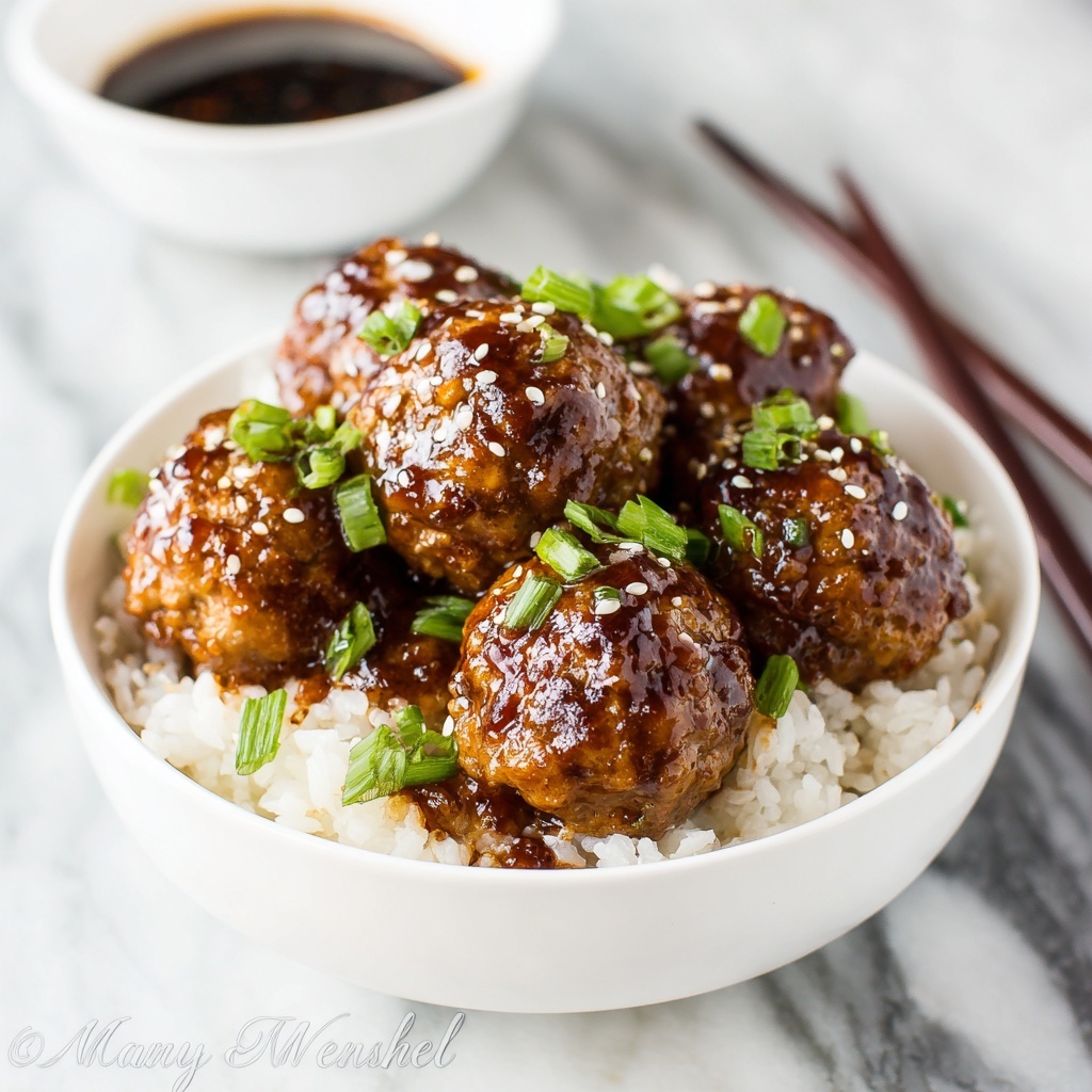 Sprinkle your meatballs with toasted sesame seeds and thinly sliced green onions for a fresh, nutty crunch and an extra burst of color. These simple touches elevate the dish’s presentation and add layers of texture.