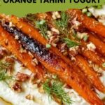 This vibrant and wholesome Balsamic Carrots with Orange Tahini Yogurt recipe combines tender roasted carrots glazed with a tangy balsamic and maple syrup dressing, crispy spiced Puy lentils, and a creamy orange-infused tahini yogurt sauce. Garnished with toasted pecans and fresh herbs, this dish offers a delightful medley of textures and flavors perfect for a healthy lunch or dinner.