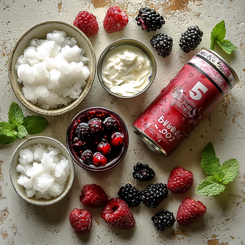 Gathering your ingredients for the Berry Beach Bash Dirty Soda Recipe is delightfully simple, yet each one plays a crucial role in crafting that perfect balance of creaminess, fruitiness, and fizz that makes this drink so irresistible.