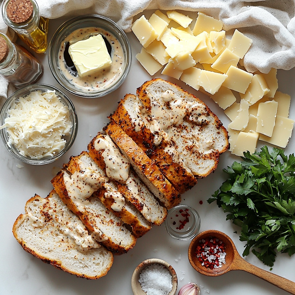 Gathering a few simple yet flavorful ingredients is all it takes to create this standout recipe. Each component brings something special to the table: fresh bread for crunch, buttery garlic for savory depth, creamy Alfredo sauce for richness, and blackened chicken for a punch of smoky spice. Get ready to enjoy an incredible culinary experience with ingredients you can easily find.