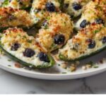 Delight your guests with these Blueberry Brie Jalapeño Poppers, a perfect blend of spicy jalapeños, creamy brie cheese, and sweet blueberry preserves. Baked to perfection and topped with a touch of honey and crunchy nuts, these poppers offer a unique flavor combination that is both elegant and easy to prepare.