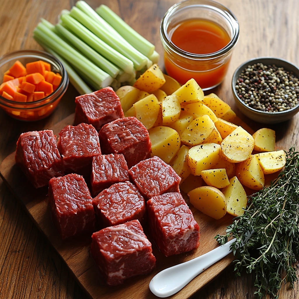 - Beef chuck or stew meat (2 pounds): Choose well-marbled beef for the most tender, flavorful results after braising.