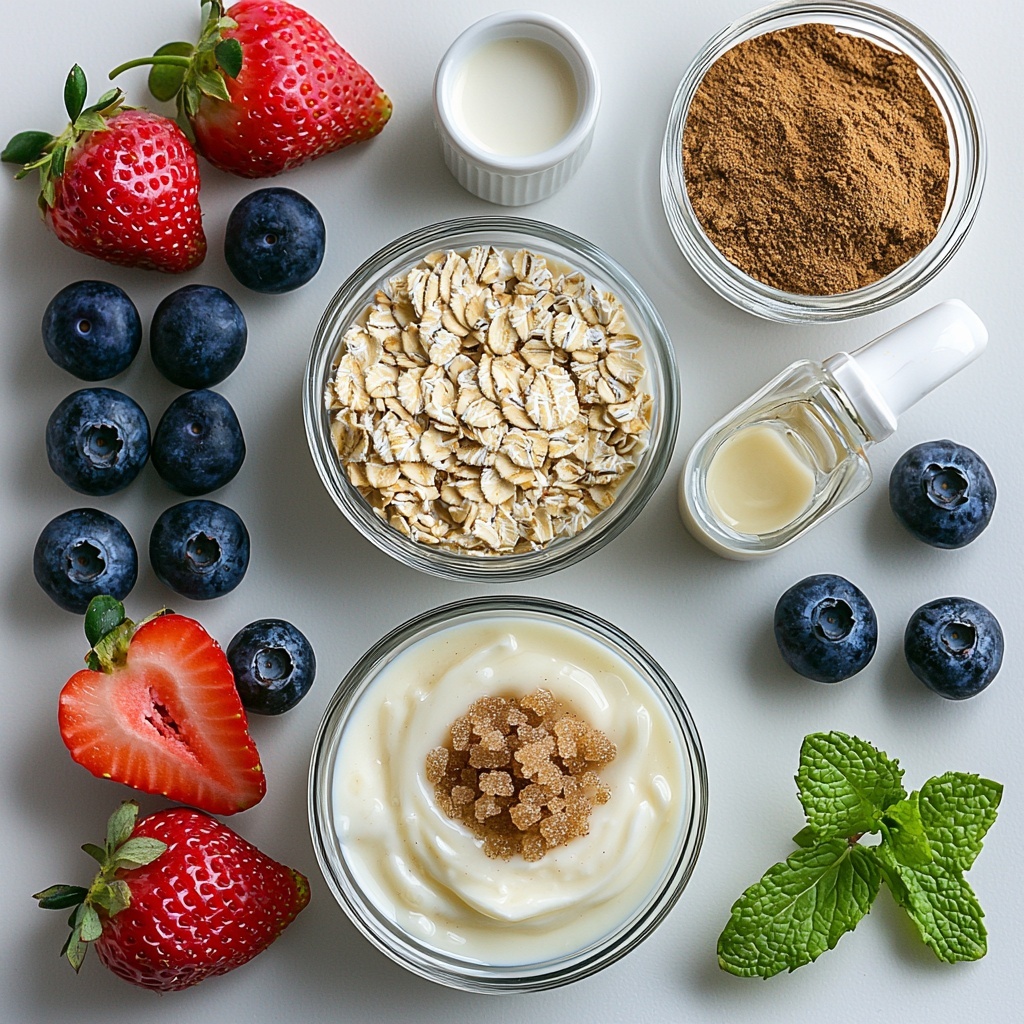 - Combine Ingredients: In a jar or bowl, mix together the rolled oats, milk, plain yogurt, brown sugar, ground cinnamon, vanilla extract, and a pinch of salt until fully combined.