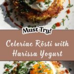 Celeriac Rösti with Harissa Yogurt is a deliciously crispy and flavorful dish featuring coarsely grated celeriac and potatoes formed into golden patties, served with a spicy and creamy harissa yogurt sauce, topped with perfectly fried eggs. This versatile recipe is perfect for breakfast, brunch, or a light dinner, combining earthy root vegetables with zesty Middle Eastern-inspired flavors.