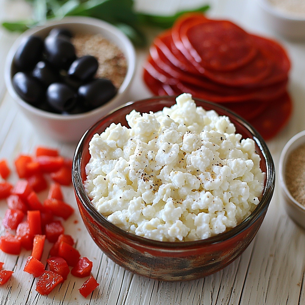 - Mix Ingredients: In a large mixing bowl, combine the cottage cheese, 1/3 cup marinara sauce, diced black olives, diced red bell pepper, garlic powder, and Italian seasoning. For a smoother texture, blend the cottage cheese and marinara sauce first, then fold in the remaining ingredients gently.