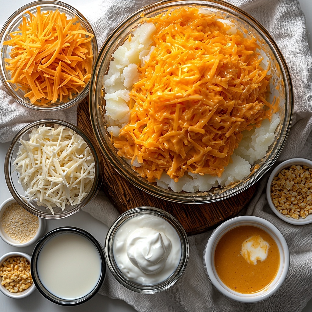 Getting this Cheesy Potato Casserole Recipe just right is all about having simple, accessible ingredients that work together to create a symphony of creamy, crunchy, and cheesy sensations. Each ingredient plays a vital role—some add richness, others bring savory depth, and the topping offers a wonderful crunch that makes this dish unforgettable.