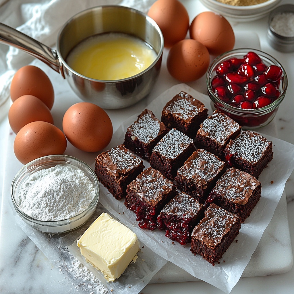 This recipe is wonderfully straightforward, relying on basic but essential ingredients that come together to create complex flavors and textures. Each component plays a vital role to ensure your Cherry Cheesecake Brownies Recipe is irresistibly moist, creamy, and delightfully fruity.
