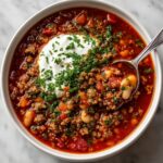 This Chickpea Lamb Shawarma Soup is a hearty and aromatic dish combining ground lamb with warm Middle Eastern spices, tender chickpeas, and fresh spinach. Perfect as a comforting meal, it incorporates rich flavors from cumin, coriander, paprika, and other spices, finished with a creamy dollop of yoghurt or sour cream and fresh cilantro. Ready in under 40 minutes, this soup is both satisfying and delicious.
