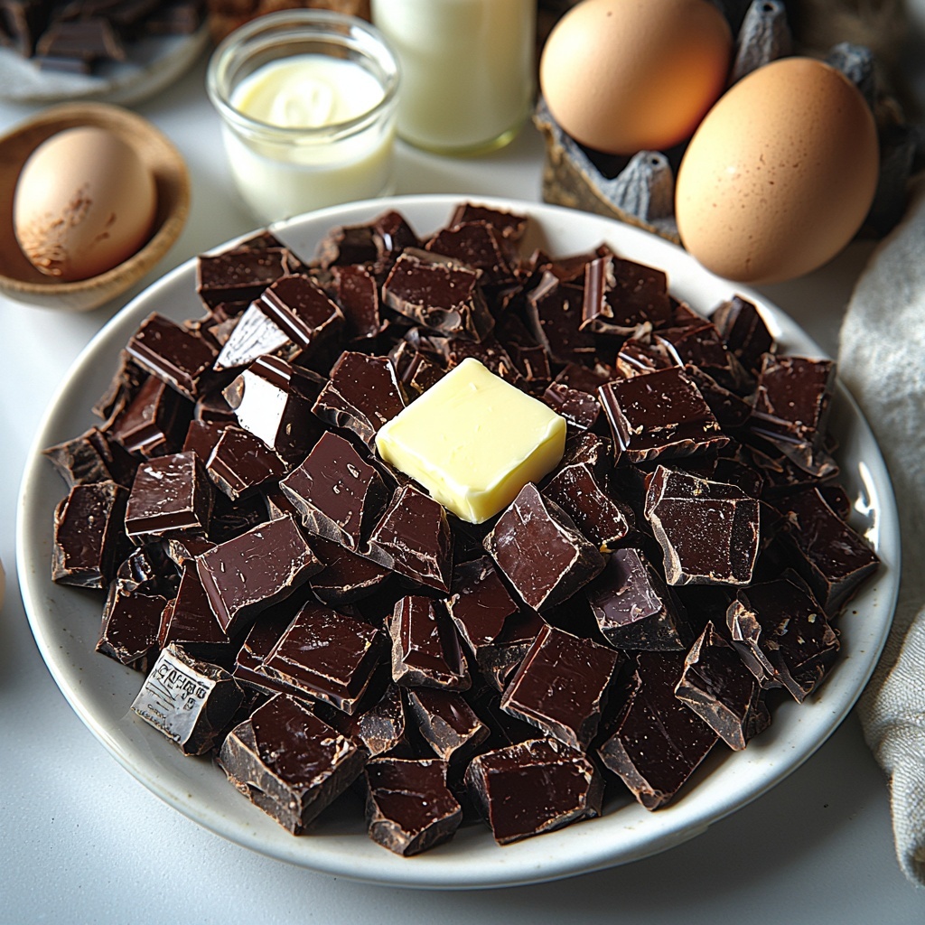 - Melt Chocolate: Place the chocolate, butter, and salt in a microwave-safe bowl. Microwave in 20-second bursts, stirring between each, until the chocolate is melted and smooth. Avoid overheating. Set aside to cool slightly.