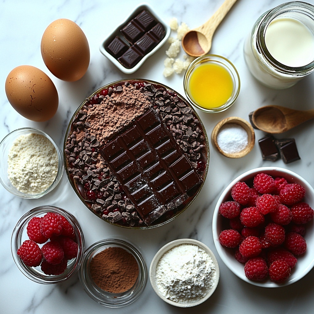 Simple, yet thoughtfully chosen ingredients are the backbone of this Chocolate Raspberry Mousse Cake Recipe. Each component is carefully selected to build layers of flavor, from the rich dark chocolate and tender sponge to the fruity raspberry mousse that brings a fresh zing to the dessert.