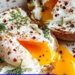 - Assemble the Dish: On a serving plate, place the toasted English muffin halves. Spread a generous layer of the herbed yogurt mixture evenly over each half. Top each with a perfectly poached egg. Drizzle the warm spiced butter over the eggs for a fragrant, flavorful touch. Garnish with additional fresh herbs like dill, parsley, or chives and season with freshly ground black pepper to taste. Serve immediately while warm.