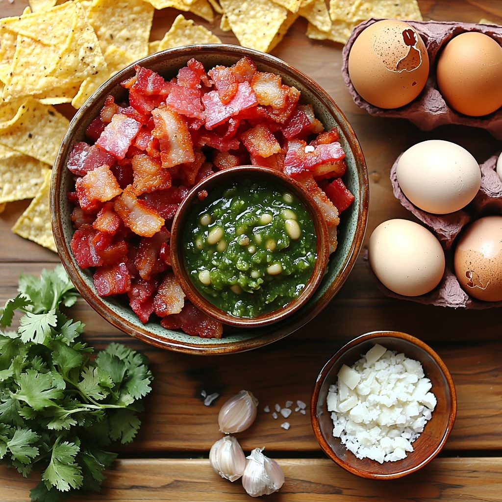 This dish is best enjoyed fresh or refrigerated rather than frozen. Freezing may cause the texture of the eggs and chips to change unfavorably, resulting in a less satisfying reheated meal. For best results, freeze the components separately if you want to prep ahead, such as the salsa verde or cooked bacon.