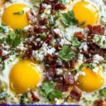 This hearty Chilaquiles recipe combines crispy bacon, creamy eggs, melted cheese, and tangy salsa verde over crunchy tortilla chips for a flavorful and satisfying Mexican-inspired breakfast or brunch dish. With layers of pinto beans and serrano chile adding depth and spice, it’s baked to perfection with gooey cheese and topped with fresh cilantro for a vibrant finish.