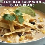 This creamy chicken tortilla soup with black beans is a comforting and flavorful dish that tastes like it’s from a restaurant. Featuring shredded chicken, black beans, corn, and a rich combination of spices, it’s finished with creamy heavy cream and garnished with crispy tortilla strips, fresh cilantro, lime, and optional avocado or sour cream for a perfect bowl of satisfying soup.