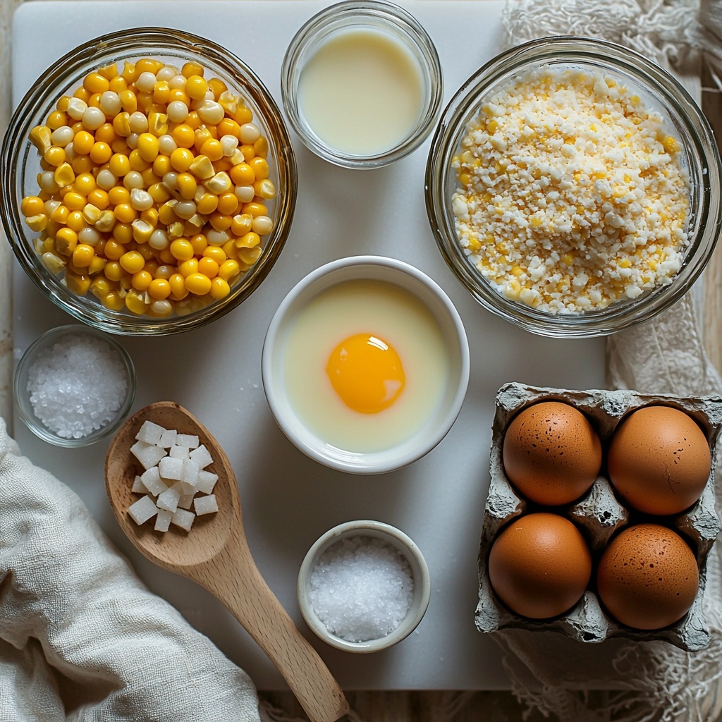 The beauty of this Creamy Corn Pudding with Optional Cheese Recipe lies in its simplicity. Each ingredient is essential, contributing to the dish’s irresistible texture and nuanced flavor while keeping everything straightforward and accessible.