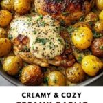 This Creamy Garlic Chicken with Roasted Baby Potatoes recipe offers a savory, comforting meal perfect for any night of the week. Juicy chicken breasts are seared to golden perfection and simmered in a luscious garlic Parmesan cream sauce. Paired with crispy roasted baby potatoes seasoned with herbs, this dish combines warmth and flavor effortlessly for a satisfying dinner.