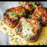 Return the seared pork chops to the skillet, nestling them gently into the creamy sauce. Spoon sauce over each chop to ensure every bite is indulgently moist. Just before plating, sprinkle with fresh parsley for a burst of color and a hint of fresh herbal brightness. Now, you’re ready for a meal that embodies warmth, flavor, and easy elegance!