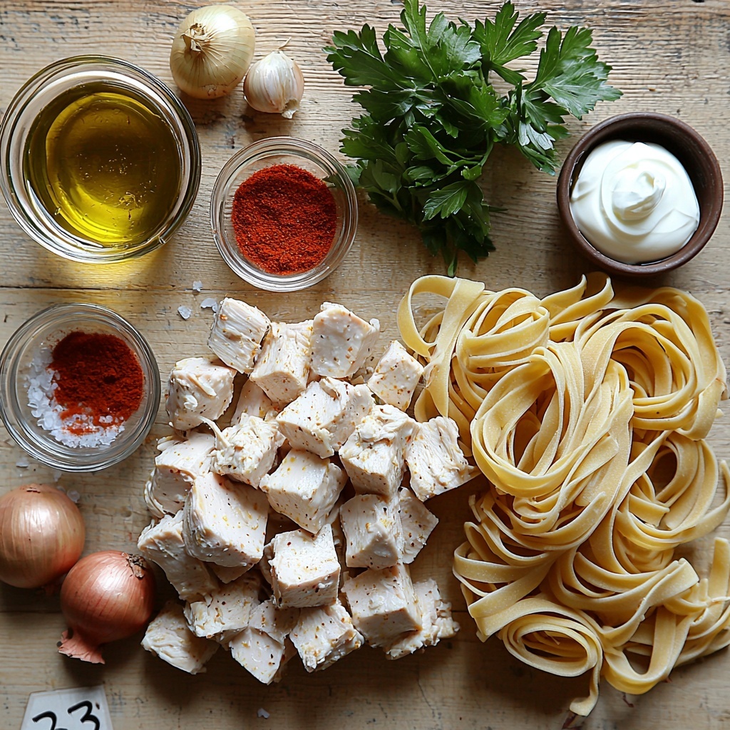Gathering simple, high-quality ingredients is the secret to making this dish stand out. Each item plays a vital role, from juicy chicken to fresh mushrooms, creating layers of texture and flavor that bring this recipe to life.