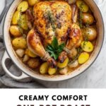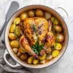 This Creamy One-Pot Roast Chicken recipe is a comforting, flavorful meal perfect for family dinners. Featuring a whole roasted chicken atop a bed of leeks, complemented by tender potatoes simmered in a luscious cream and mustard sauce, this dish combines savory herbs and a rich sauce that will impress your loved ones with minimal cleanup.