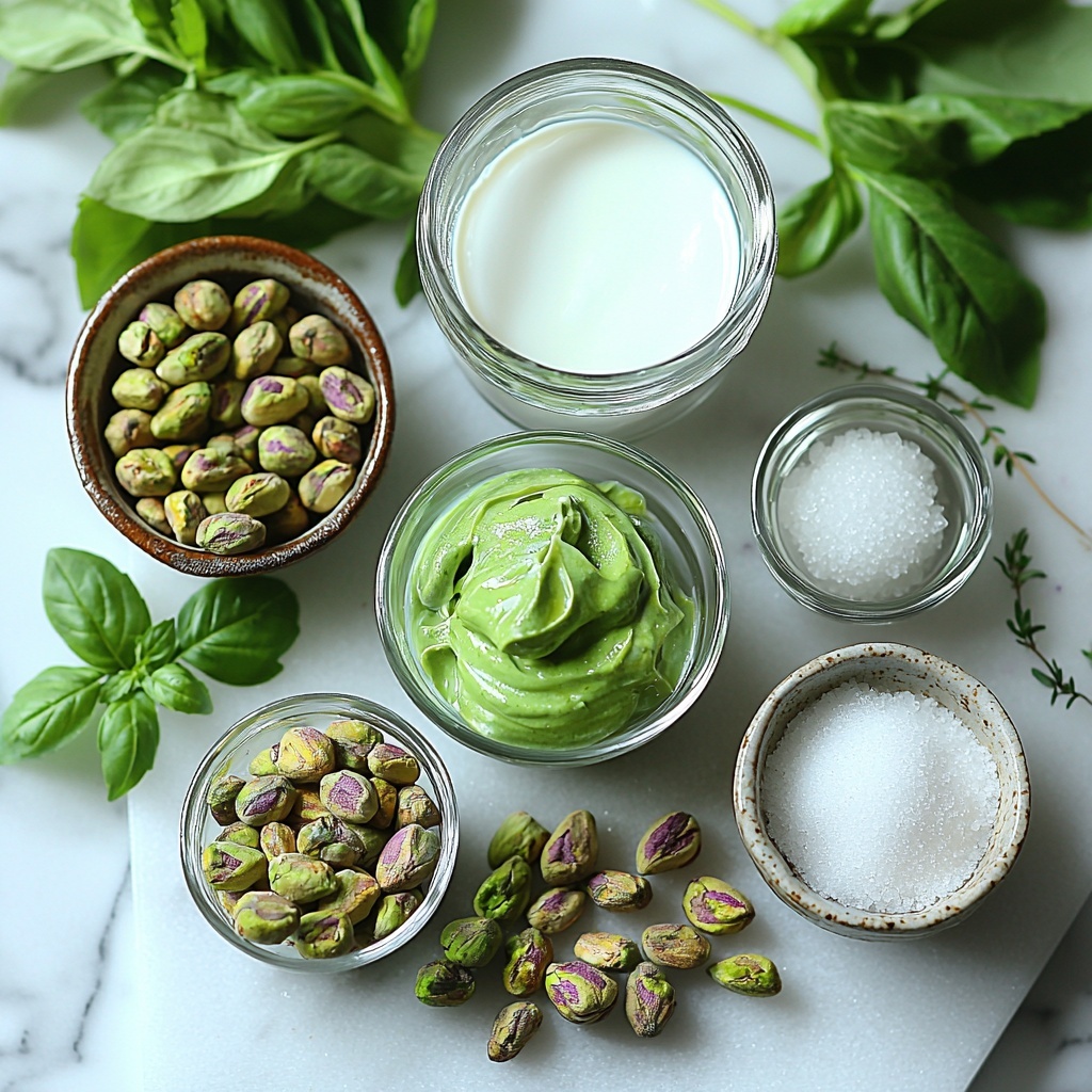 Gathering the right ingredients is the first step toward creating this wonderfully creamy and nutty dessert. Each ingredient plays a crucial role, whether it’s the pistachios for that distinct flavor and green hue, or the heavy cream that brings the silky smooth texture.
