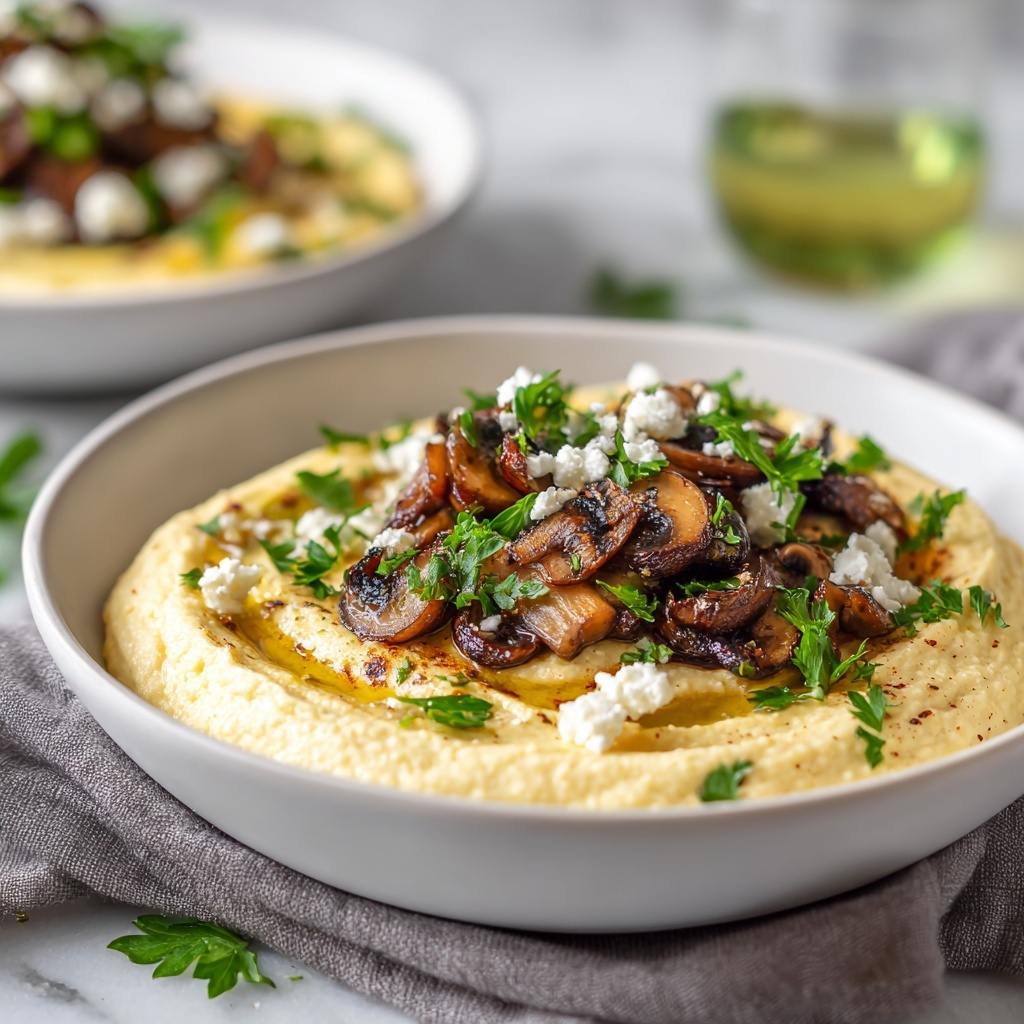 For a fun twist, spread the creamy polenta in a baking dish, top with sautéed mushrooms, and broil lightly to add a crispy, golden crust. Alternatively, serve polenta cakes topped with mushrooms for an elegant appetizer or small plates option.