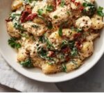 This creamy sun-dried tomato gnocchi is a rich and comforting Italian-inspired dish featuring tender potato gnocchi tossed in a luscious sauce made from heavy cream, garlic, and sun-dried tomatoes, finished with fresh Parmesan cheese for an indulgent finish.