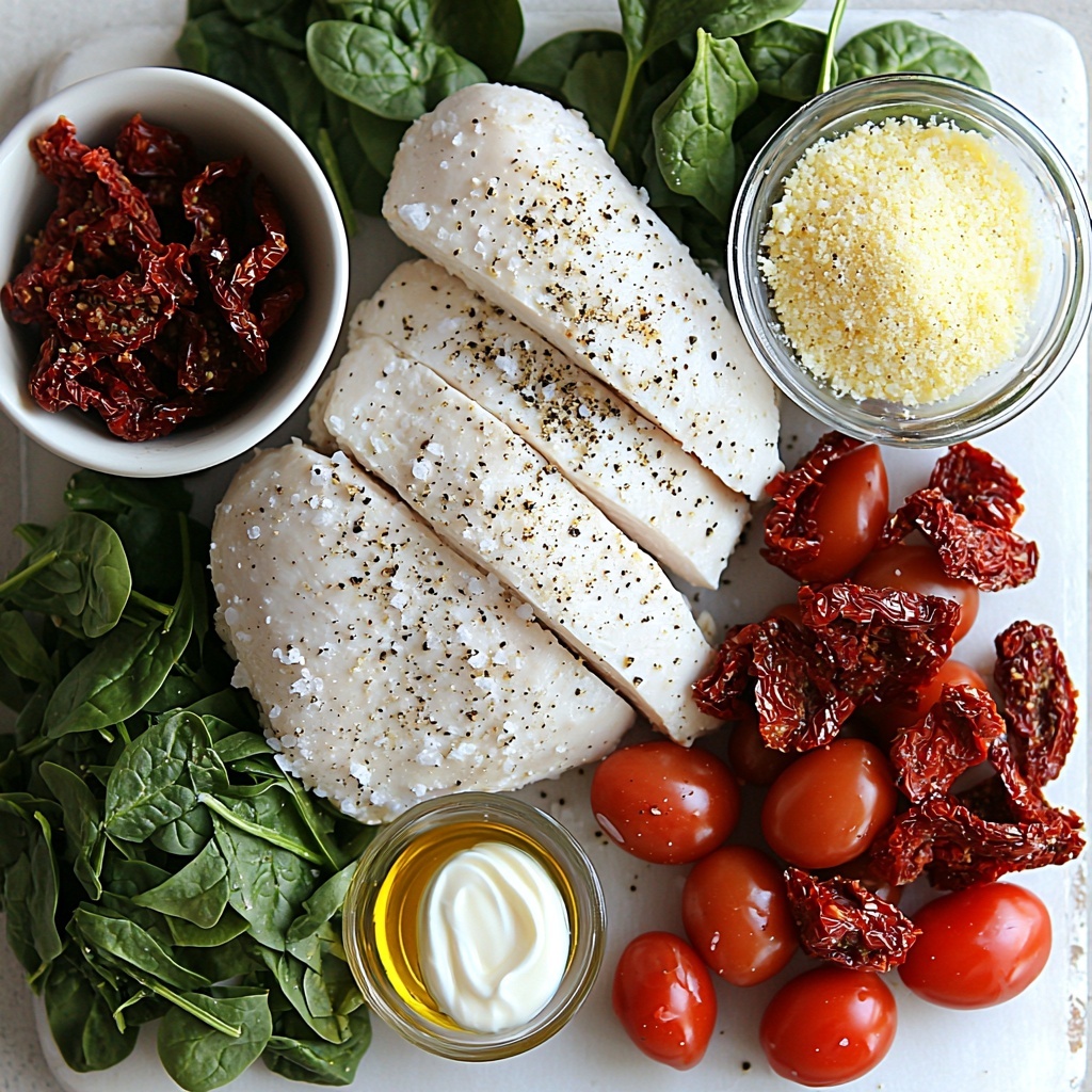 These simple, wholesome ingredients are the heart of this Creamy Tuscan Chicken Recipe. Each one adds a unique touch, from the savory depth of Parmesan cheese to the beautiful pop of sun-dried tomatoes and the fresh vibrancy of spinach, creating a perfectly balanced dish that’s as delicious as it is colorful.