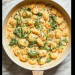 Creamy Tuscan Gnocchi is a rich and flavorful Italian-inspired dish featuring golden sautéed gnocchi simmered in a luscious cream sauce with sun-dried tomatoes, garlic, spinach, and Parmesan cheese. It’s a quick and comforting meal perfect for a weeknight dinner.