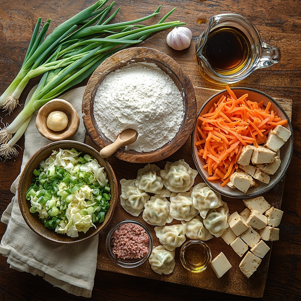 These ingredients are straightforward but crucial, each playing a pivotal role in crafting dumplings that boast a perfect balance of tender wrappers and flavorful fillings. From the flour that forms your tender-yet-crisp dough to the garlic and soy sauce that create mouthwatering depth, every element matters.