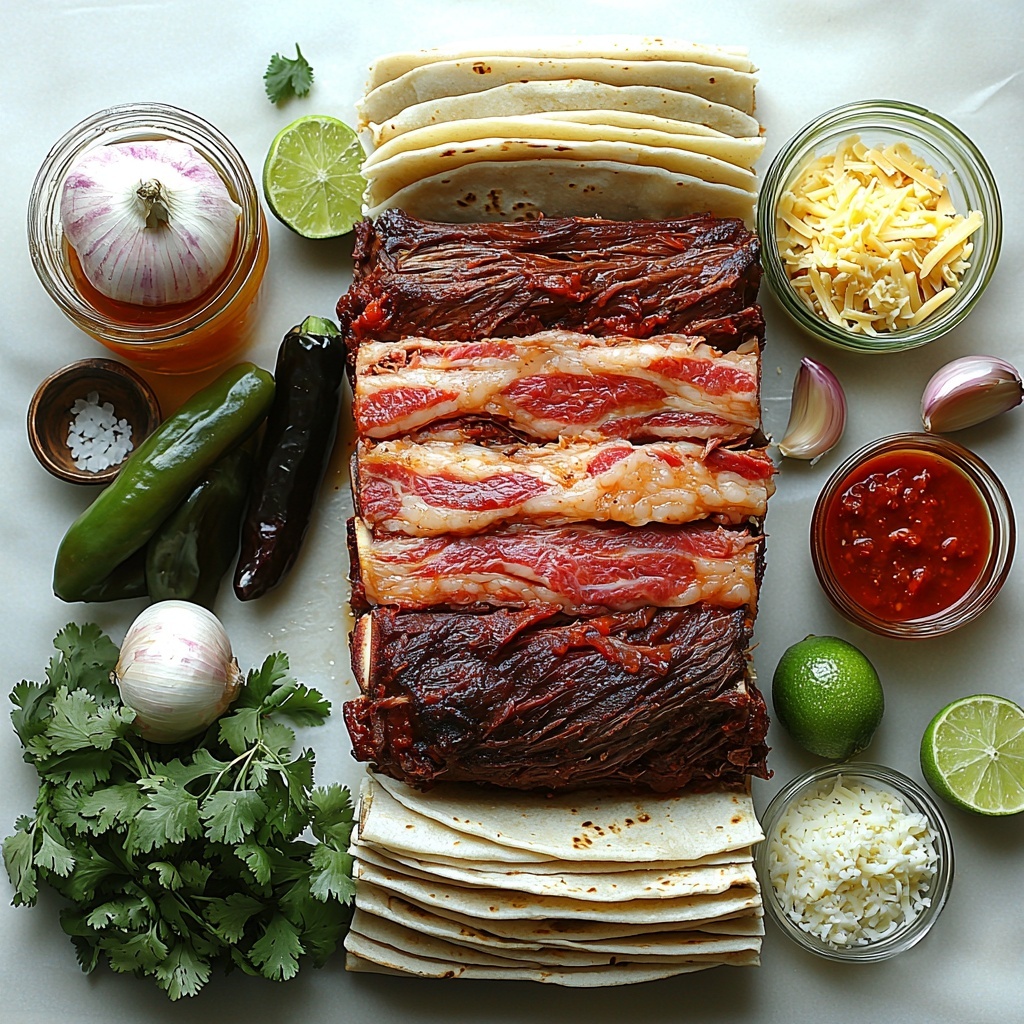 Getting ready to make this Crockpot Birria Tacos Recipe is a breeze because the ingredients are straightforward yet essential for achieving the perfect balance of smoky, savory, and tangy notes. Each item plays a key role, from the tender beef chuck roast that fills every bite with juicy richness to the dried chiles that bring that signature flavor depth and mild heat. Let’s dive into what you’ll need to create this flavorful masterpiece.