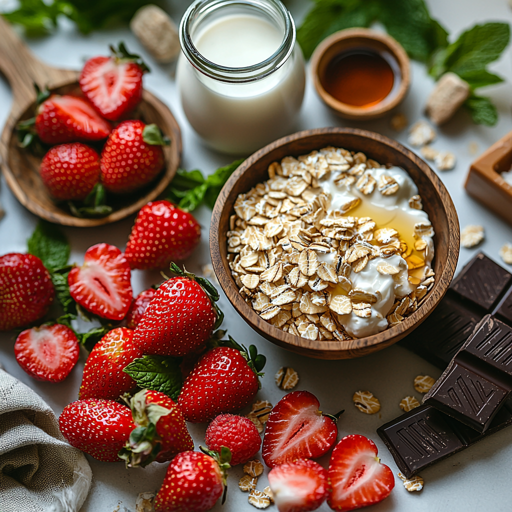 This recipe is delightfully simple and uses a handful of essential ingredients that each play a starring role. From creamy oats providing heartiness and texture to luscious strawberries adding a fresh pop of color and sweetness, every component blends harmoniously into something magical.