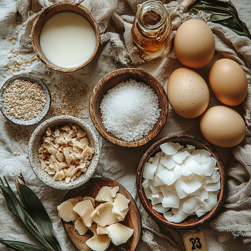 Gathering these straightforward but essential ingredients is the first step to achieving the perfect harmony of flavor and texture in our custard. Each component plays a vital role, whether it be the richness, sweetness, or that distinctive tropical aroma.