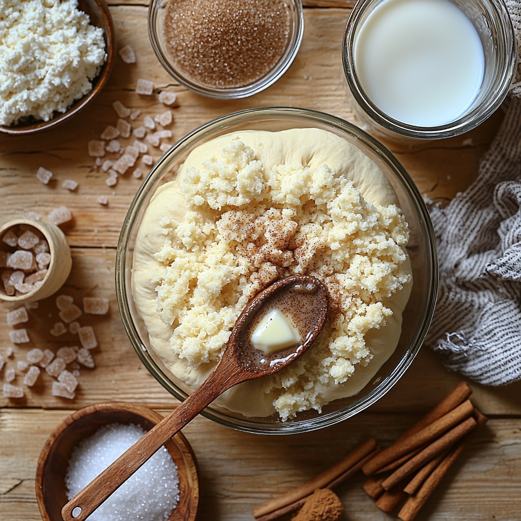 Gathering simple, familiar ingredients is all it takes to create this scrumptious bread. Each element plays a key role—from the fluffy bread dough that gives the base structure, to the sugars and cinnamon that layer on sweet, warm flavors, and the luscious butter and icing that add richness and moisture.