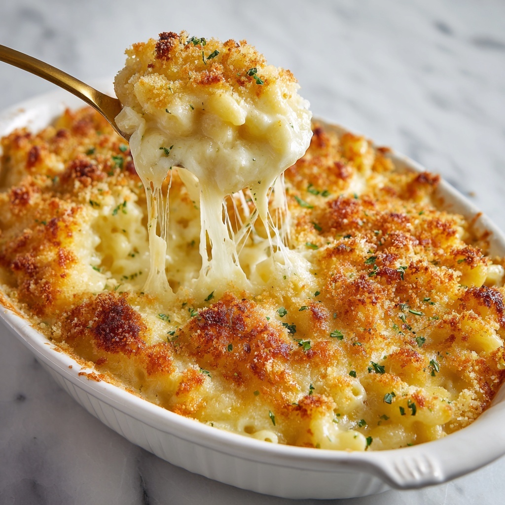 Transfer the cheesy pasta into a baking dish, sprinkle your toasted breadcrumb topping evenly, and bake at 350°F (175°C) for about 10-15 minutes until the top is beautifully golden and bubbly.