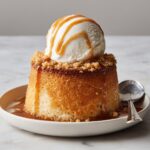 This is the magic step! Carefully pour the hot water all over the dish—it will seem unusual but trust the process. The water interacts with the sugar and batter to form a saucy, irresistible layer underneath. Bake for 45 to 55 minutes until the top is golden brown and bubbling. A clean toothpick test confirms it’s done.