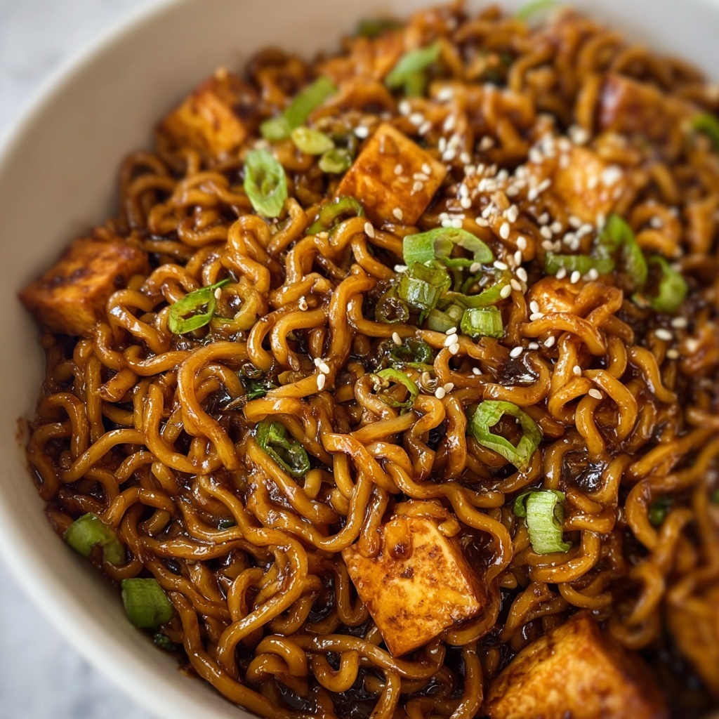 A quick and flavorful recipe for Easy Saucy Ramen Noodles featuring tender tofu or veggies in a rich, savory sauce. Perfect for a satisfying weeknight meal, this dish combines simple ingredients like soy sauce, garlic, and chili garlic sauce to create a deliciously saucy and comforting bowl of noodles.