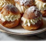 Delight in these classic Eggnog Cream Puffs, a festive and elegant dessert featuring tender choux pastry filled with a rich, spiced eggnog-flavored pastry cream. Perfectly golden and dusted with powdered sugar, these cream puffs bring the cozy flavors of the holiday season to your table.