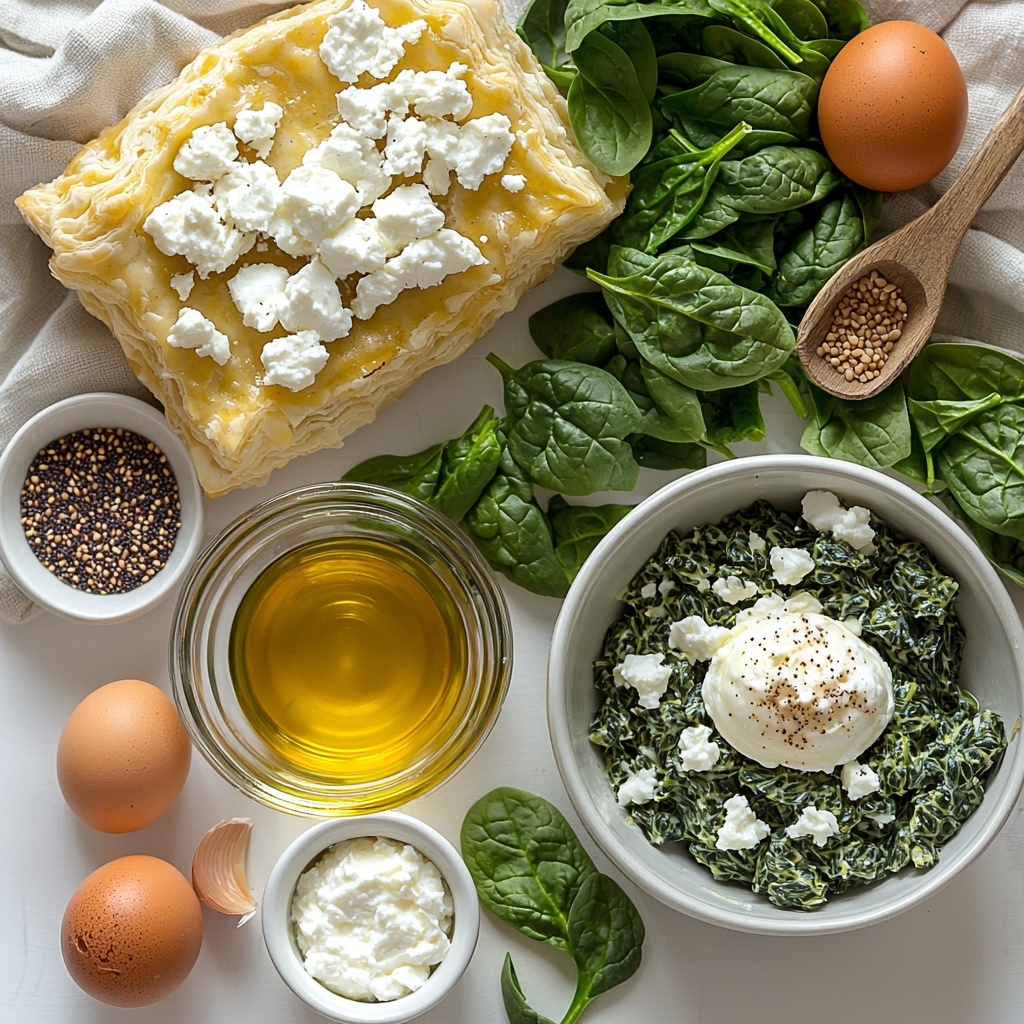 Getting this Feta and Spinach Stuffed Puff Pastry Recipe right starts with a handful of straightforward ingredients that each play an essential role in flavor, texture, and appearance. From the fresh, earthy spinach to the salty, creamy feta and ricotta cheeses, every component works harmoniously to create that irresistible filling, while the puff pastry provides the light, buttery canvas that holds it all together.