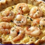 7. Fill Pie Crust: Spoon the shrimp mixture evenly into the prepared pie crust, smoothing the top.