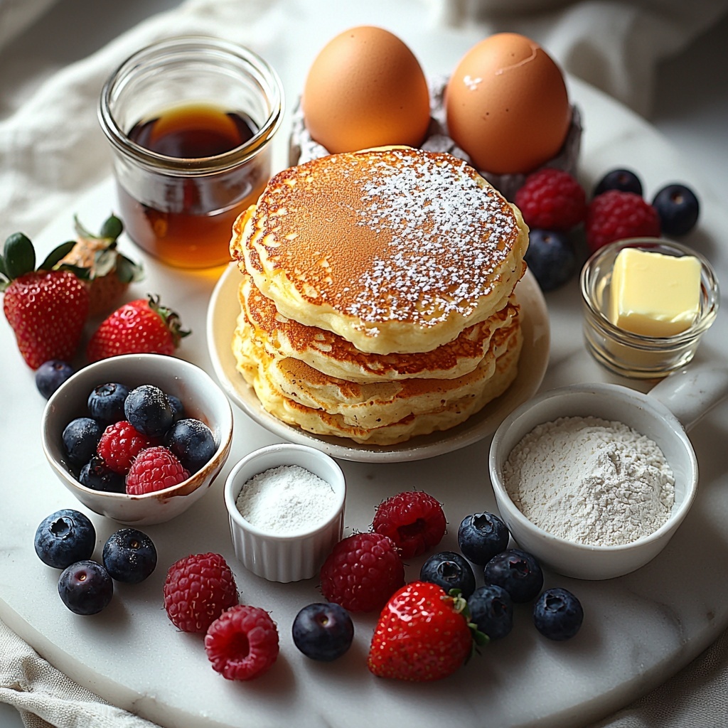 These ingredients are simple yet crucial, working in harmony to create those irresistibly airy and tender pancakes. Each component plays a unique role, from the richness of the eggs to the subtle sweetness of vanilla, all combining to produce the perfect soufflé texture and inviting flavor.