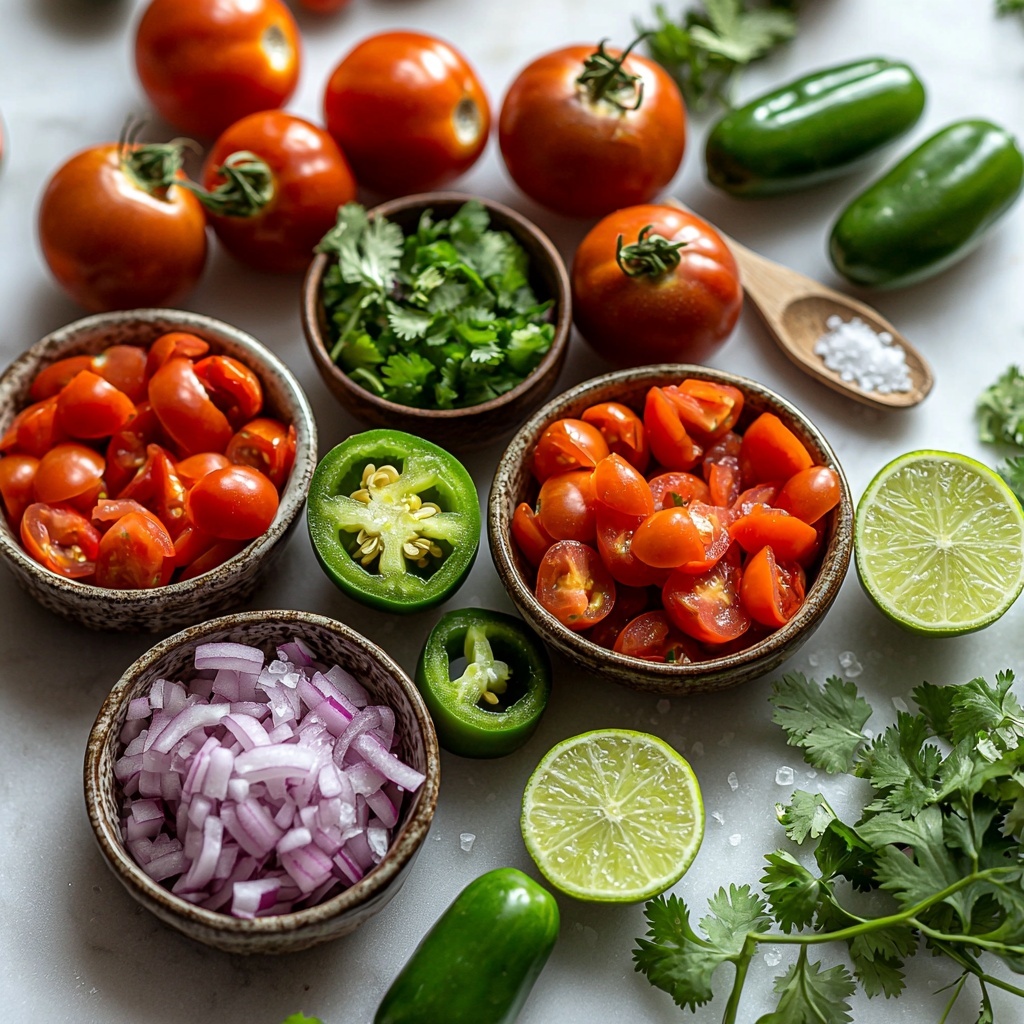 The beauty of this Fresh Pico De Gallo: Easy Mexican Salsa Recipe lies in its straightforward and wholesome ingredients. Each one is essential not just for flavor but also to create that perfect balance of texture, color, and freshness that defines this salsa.