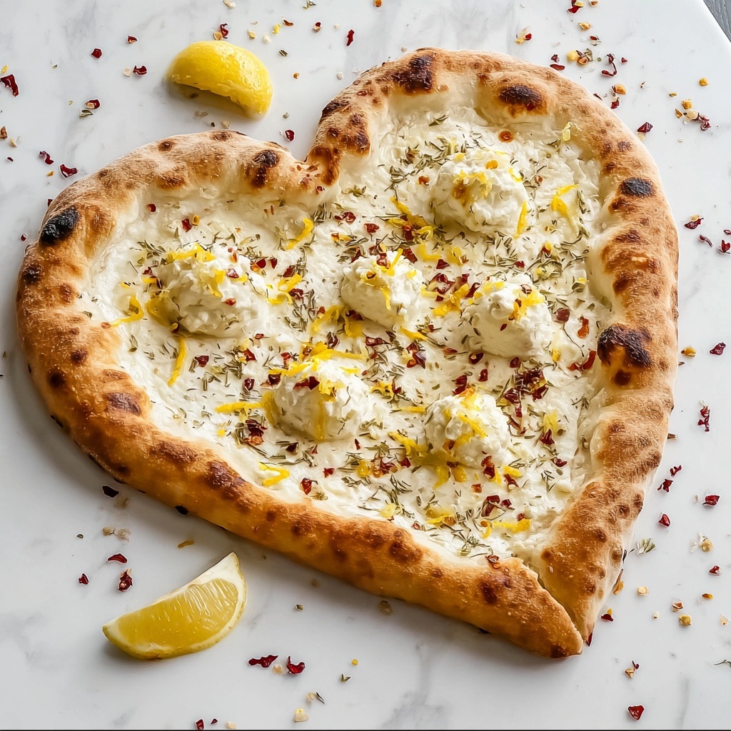 Brush the entire dough surface generously with olive oil, making sure to reach every edge—this is the start of your garlic bread crust magic. Spread pressed fresh garlic all over, then shower the pizza with grated provolone cheese. Add torn or sliced fresh mozzarella followed by dollops of ricotta. Sprinkle the parmigiano-reggiano across the top, then finish with fresh lemon zest and crushed red pepper flakes to awaken the flavors with a subtle zing and mild heat.