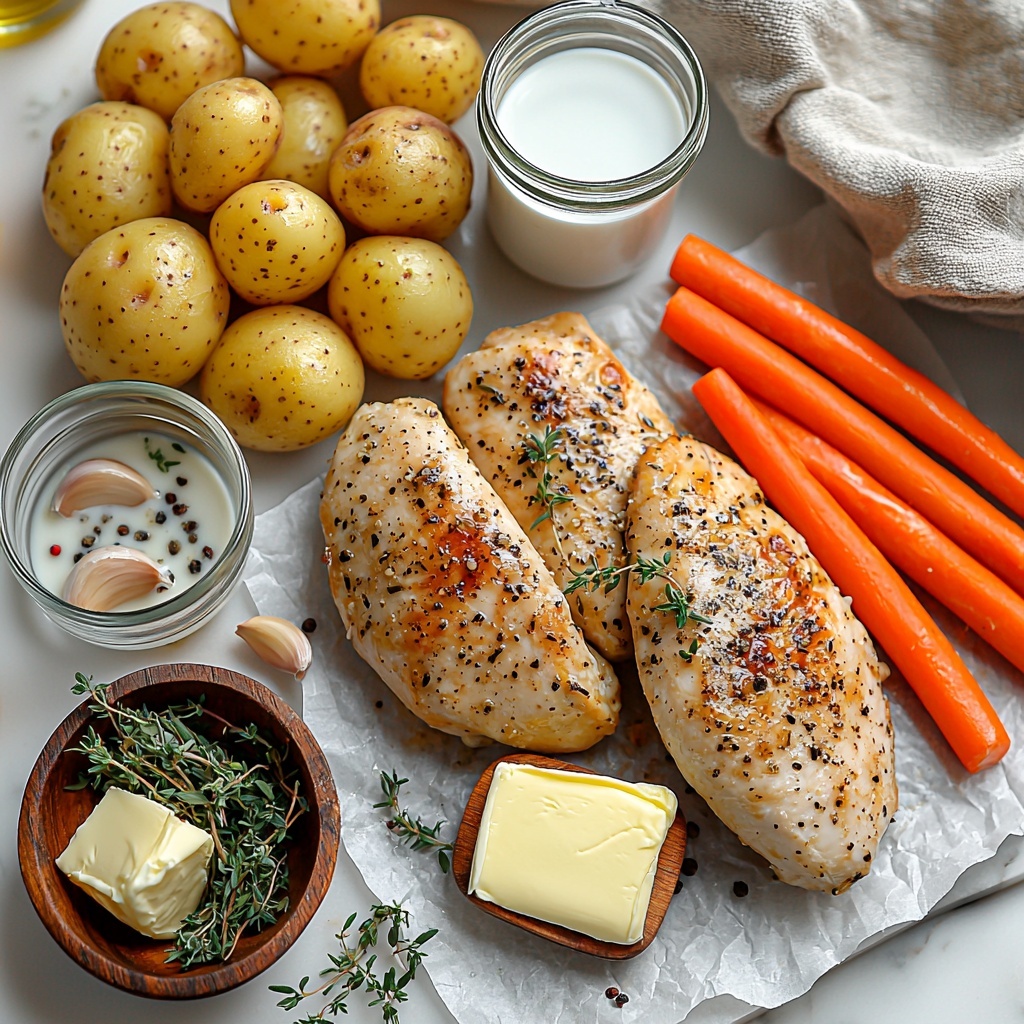 This recipe is all about simplicity meeting incredible flavor. Each ingredient plays a crucial role in building the dish’s bold yet comforting profile, from the fresh herbs that perk up the chicken to the creamy touch of butter in the potatoes, and the natural sweetness of roasted carrots that bring beautiful color and texture to the plate.