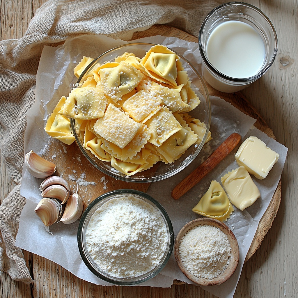 This recipe calls for simple, familiar ingredients that come together to create a sauce so luscious and satisfying. Each one plays a vital role — from the rich Parmesan giving that signature sharpness to the fresh tortellini providing the soft, tender base that soaks up every bit of the cream sauce.