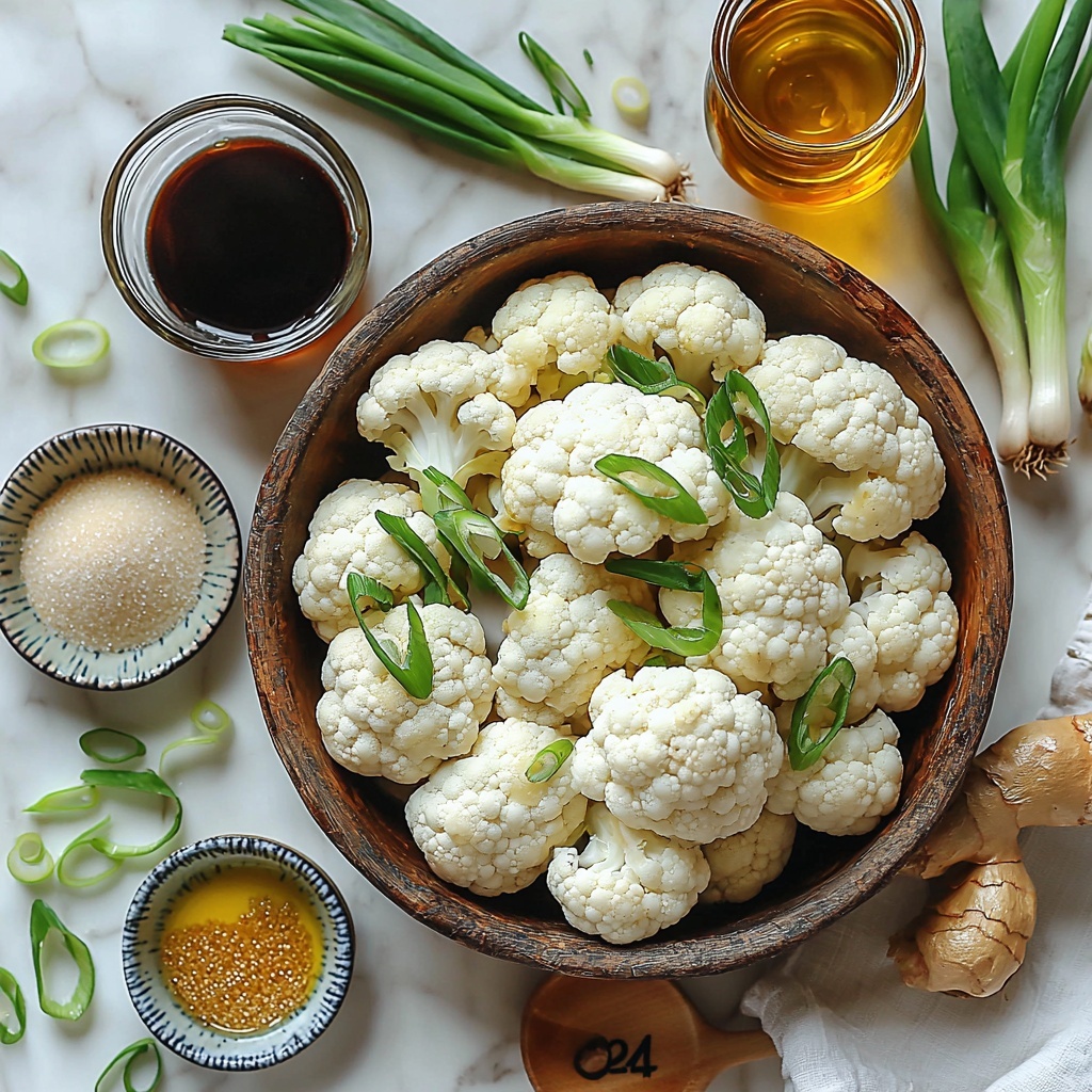 Start by breaking down a medium head of cauliflower into bite-sized florets. Rinse them gently under cold water to remove any dirt and extra starch. This prep step ensures your cauliflower stays fresh and ready to take on the crispy coating and sauce.