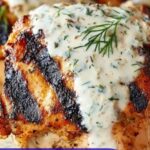 This delicious Grilled Chicken Breast with Creamy Dill Sauce is a quick and healthy meal perfect for any weeknight. Juicy, marinated chicken breasts are grilled to perfection and topped with a tangy, creamy dill sauce made from Greek yogurt, fresh dill, and a touch of honey, delivering a delightful balance of flavors.