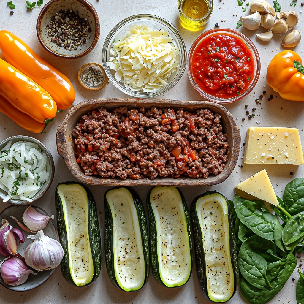 These ingredients are simple yet essential to making this Ground Beef Zucchini Boats Recipe come to life. Each one plays a role in building layers of taste, texture, and color that transform humble zucchini and beef into a satisfying feast.